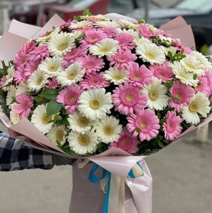 Букет из 101 белой и розовой герберой | Купить в Бобруйске